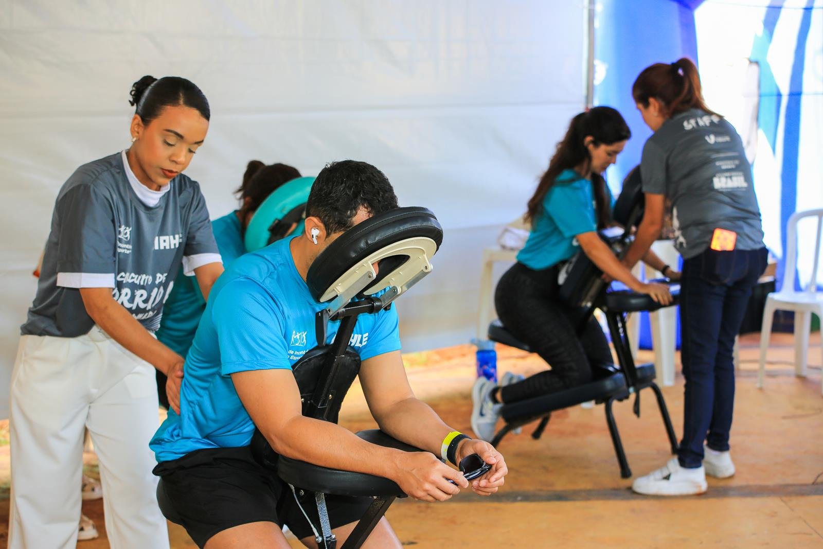 Além disso, foram oferecidas gratuitamente diversas ações voltadas ao bem-estar e à saúde, como avaliação física, quick massagem, aula de alongamento e aquecimento, aferição de glicemia e pressão arterial, além de aula de dança.